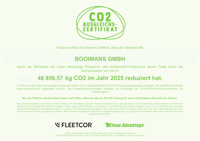 Wir haben das Clean Advantage CO2 Ausgleichszertifikat von 2025 erhalten.
